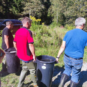 Das Ergebnis war überraschend erfreulich. Um die 60 Stück Bachforellen in jeder Größe von 3 cm bis 35 cm konnten entdeckt werden. Nach der Begutachtung und einer kurzen Zeit zur Regenerierung unter Aufsicht wurden alle Forellen wieder in den Bach zurückgesetzt.