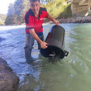 Die Elterntiere werden wieder schonend zurückgesetzt und die Eier in unseren professionellen Partner-Fischzuchtbetrieben ausgebrütet. Im Frühjahr werden dann die ca. einjährigen Setzlinge in den Tiroler Inn und ausgewählten Zubringern ausgewildert.